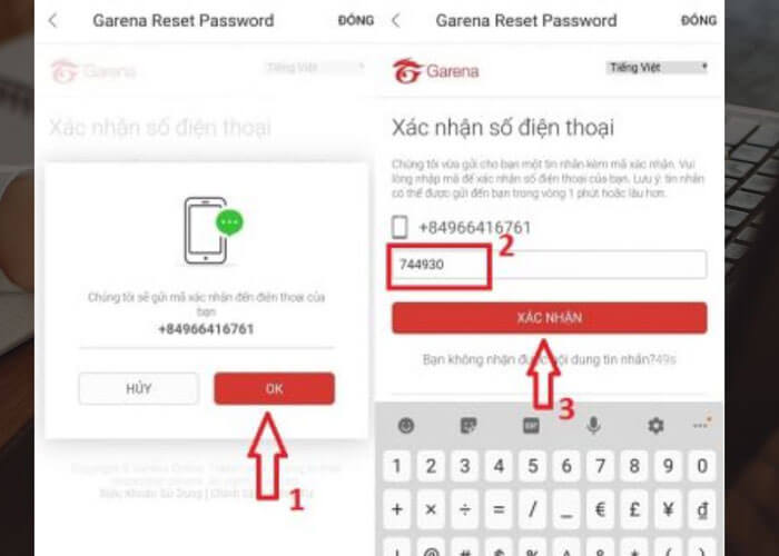 • Bước 5: Khi điện thoại được Garena báo mã xác nhận thì bạn hãy nhập vào ô trống rồi nhấn “Xác nhận”.
