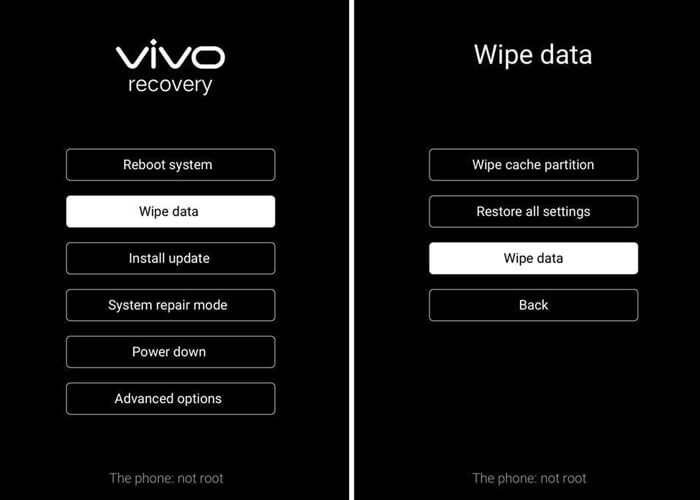 Cách 2: Hard reset Vivo Y21 qua chế độ Recovery